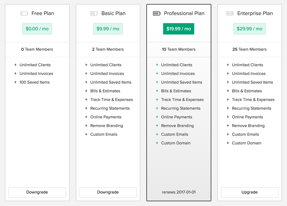 You will then be taken to a page where all available subscription plans are listed. Click "Upgrade" or "Downgrade" below your preferred subscription plan and - if a confirmation popup appears - confirm.